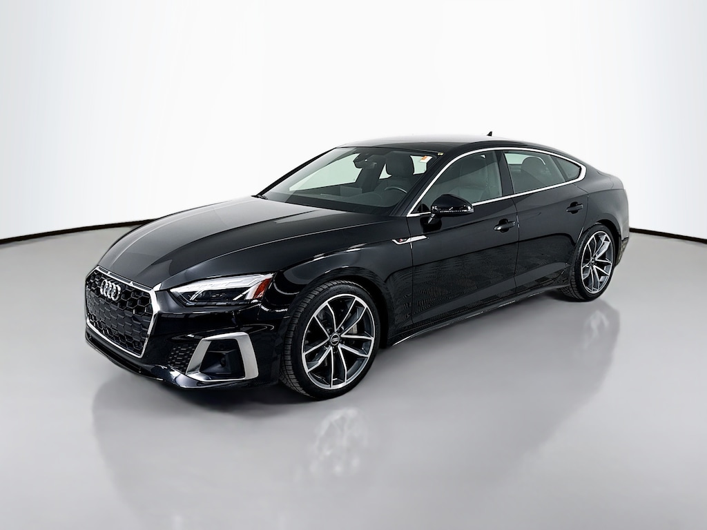 Certified. 2023 Audi A5 Sportback Mythos Black Metallic 45 S line Premium Plus Certified, Like new, Call now, Local Trade, 2 Rear USB Charge Ports, Adaptive Cruise Control, Alarm System w/Motion Sensor, Alloy wheels, Audi Active Lane Assist, Audi Advanced Key, Audi Connect PLUS, Audi Phone Box, Audi Side Assist w/Pre Sense Rear, Audi Virtual Cockpit Plus, Auto-Dimming Exterior Mirrors w/Memory, Bang & Olufsen Sound System w/3D Sound, Convenience Package, Driver Seat Memory, Hands-On Detection Steering Wheel, Heated Steering Wheel, Leatherette Covered Center Console & Door Armrests, MMI Navigation Plus, Navigation Package, Parking System Plus (Front/Rear Acoustic Sensors), Power Folding Exterior Mirrors, Premium Plus, SiriusXM w/360L, Top View Camera System, Traffic Jam Assist, Wheels: 19" 5-Spoke-Cavo Design Bi-Color Finish. Clean CARFAX. quattro 7-Speed Automatic S tronic 2.0L 4-Cylinder TFSI