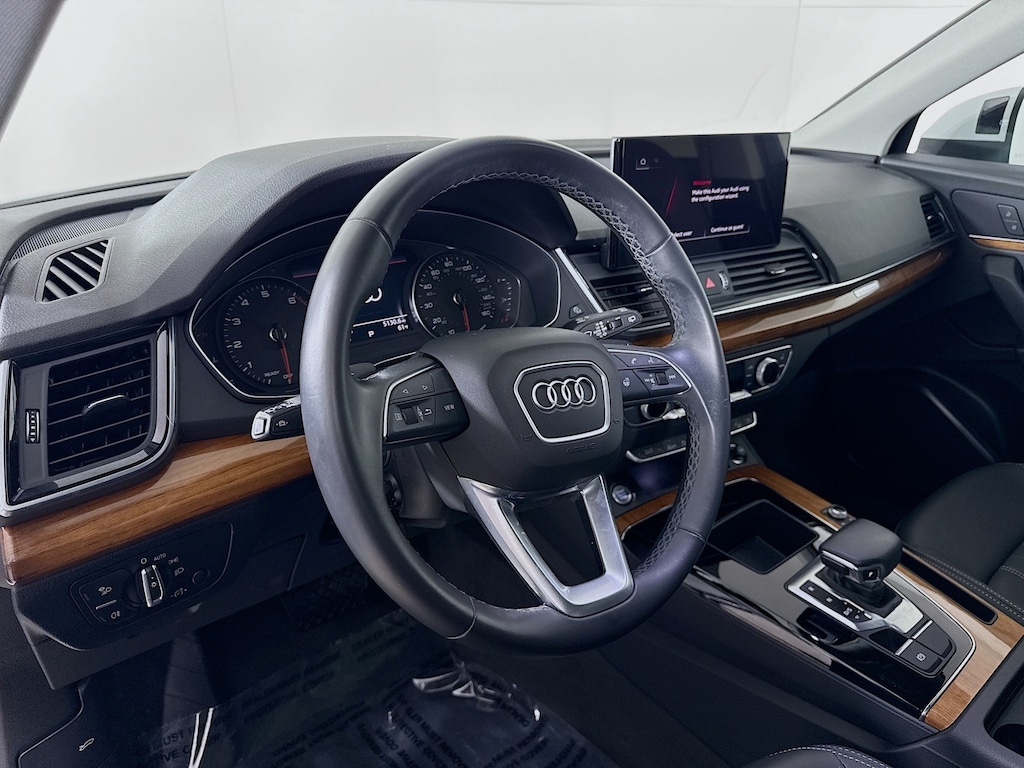 Certified. 2023 Audi Q5 Glacier White Metallic 45 S line Premium Certified, Call now, Local Trade, Black Leather, Alloy wheels, Audi Advanced Key, Auto-Dimming Power Folding Exterior Mirrors, Convenience Package, Driver Seat Memory, Heated Steering Wheel, Panoramic Sunroof, SiriusXM w/360L, Trailer Hitch. Clean CARFAX. CARFAX One-Owner. quattro 7-Speed Automatic S tronic 2.0L Turbocharged
