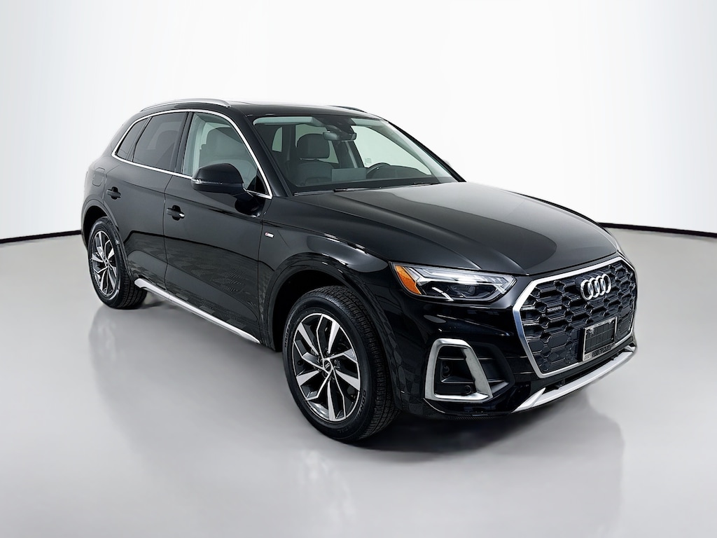 Certified. 2023 Audi Q5 Mythos Black Metallic 45 S line Premium Plus Certified, Call now, Low miles, Local Trade, Black Leather, ABS brakes, Alloy wheels, Audi Active Lane Assist, Audi Advanced Key, Audi Virtual Cockpit Plus, Auto-Dimming Power Folding Exterior Mirrors, Bang & Olufsen Sound System w/3D Sound, Compass, Convenience Package, Driver Seat Memory, Electronic Stability Control, Front dual zone A/C, Hands-On Detection Steering Wheel, Heated door mirrors, Heated front seats, Heated Steering Wheel, Illuminated entry, Leatherette Covered Center Console & Door Armrests, Low tire pressure warning, Panoramic Sunroof, Power Adjustable Steering Column, Power Liftgate, Premium Plus Package, Remote keyless entry, SiriusXM w/360L, Top View Camera System, Traction control, Traffic Jam Assist, Wheels: 19" 5-Double-Arm Design Bi-Color Finish. Clean CARFAX. CARFAX One-Owner. quattro 7-Speed Automatic S tronic 2.0L Turbocharged
