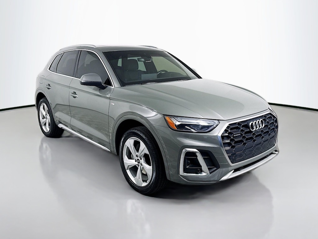 Certified. 2023 Audi Q5 Chronos Gray Metallic 45 S line Premium Certified, Call now, Local Trade, Black Leather, Alloy wheels, Audi Active Lane Assist, Audi Advanced Key, Audi Virtual Cockpit Plus, Auto-Dimming Power Folding Exterior Mirrors, Bang & Olufsen Sound System w/3D Sound, Convenience Package, Driver Seat Memory, Hands-On Detection Steering Wheel, Heated Steering Wheel, Leatherette Covered Center Console & Door Armrests, Manual Rear Side Window Sunshades, Panoramic Sunroof, Power Adjustable Steering Column, Premium Plus Package, SiriusXM w/360L, Top View Camera System, Traffic Jam Assist, Ventilated Front Sport Seats w/4-Way Power Lumbar, Warm Weather Package, Wheels: 20" 5-Arm Design. Clean CARFAX. CARFAX One-Owner. quattro 7-Speed Automatic S tronic 2.0L Turbocharged