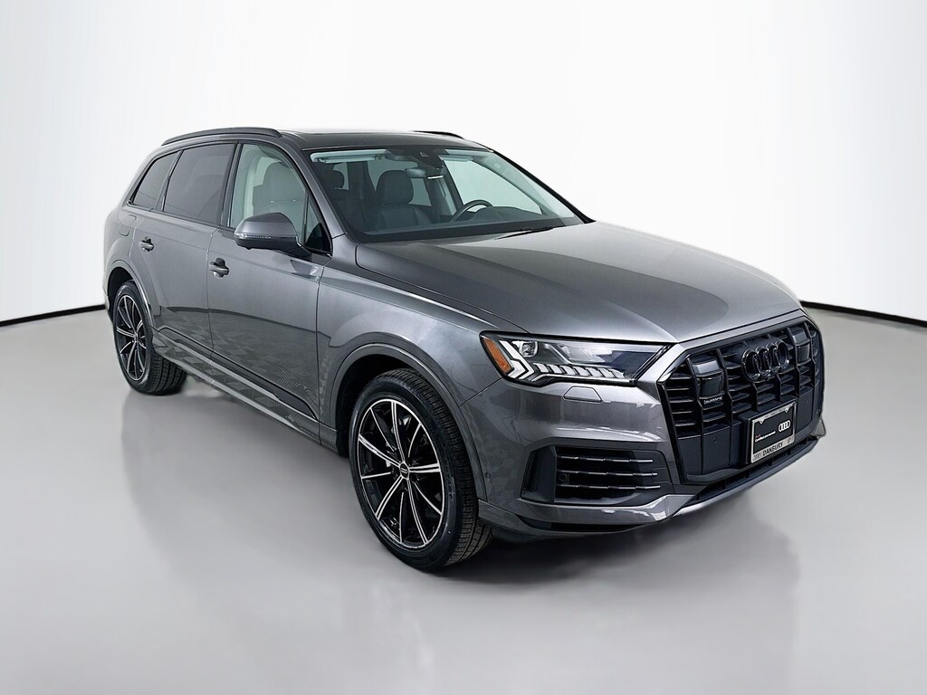 Certified. 2023 Audi Q7 Samurai Gray Metallic/SDS 55 Premium Plus Certified, Call now, Local Trade, 4-Zone Automatic Climate Control, Adaptive Cruise Assist w/Lane Guidance, Audi Phone Box w/Wireless Charging, Bang & Olufsen Premium Sound System w/3D Sound, Black Optic Package, Contour/Ambient LED Interior Lighting Package, Convenience Package, Executive Package, Front Seats w/Ventilation, Heated Rear Seats, Heated Steering Wheel, Illuminated Door Sills, Premium Plus Package, Rear Door/Side Windows & Tailgate Sunshades, Topview Camera System, Tow Hitch Receiver, Towing Package, Wheels: 20" 5-Spoke Turbine-Design, Wheels: 21" 10-Spoke-Star-Design Bi-Color Black. Clean CARFAX. CARFAX One-Owner. quattro 8-Speed Automatic with Tiptronic 3.0L TFSI