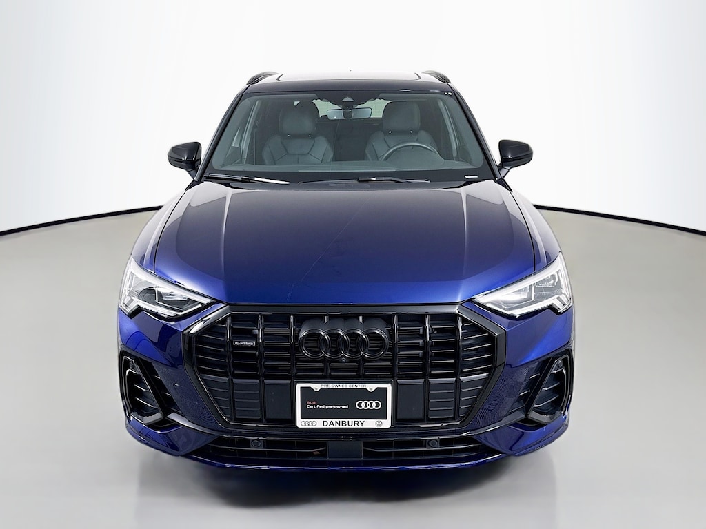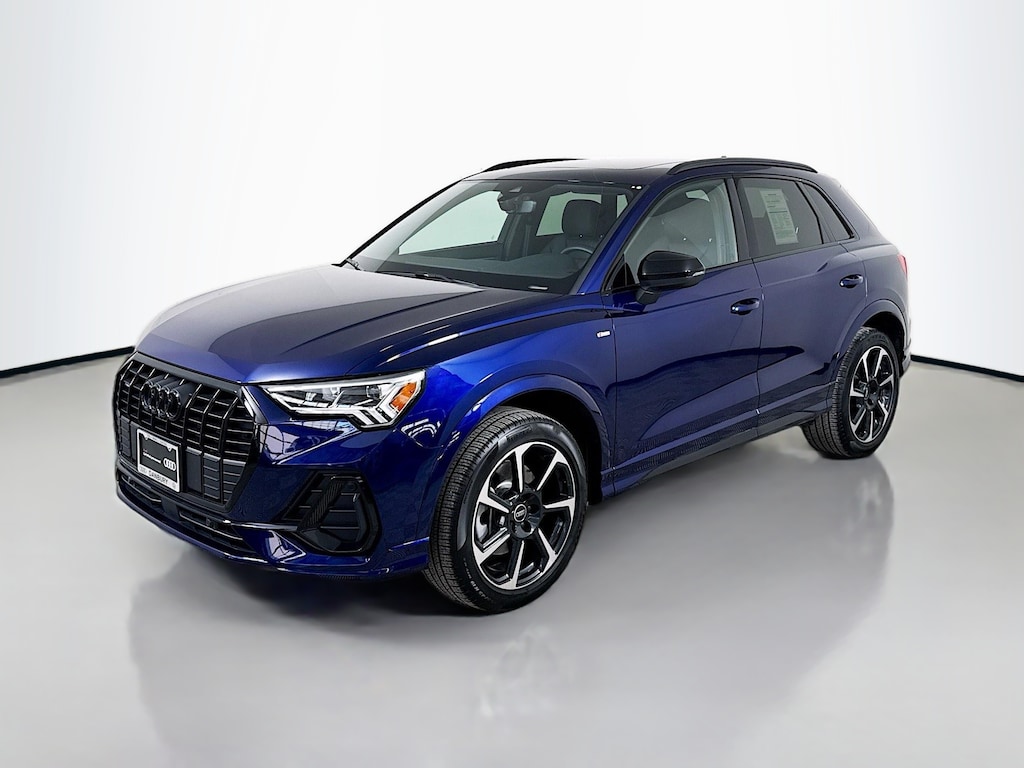 Certified. 2025 Audi Q3 Navarra Blue Metallic Premium Plus Certified, Like new, Save money, Call now, Alarm with Motion Sensor, Audi Advanced Key, Auto-Dimming Power-Folding Exterior Mirrors, Auto-Dimming Rear-View Mirror, Black Exterior Mirrors, Black Exterior Trim and Badges, Black Optic Plus Package, Black Roof Rails, Carbon Inlays, Convenience Package, Dinamica Upper Inlay and Door Armrests in Steel Gray, Driver Seat Memory, Garage Door Opener (HomeLink), LED Interior Lighting Package, LED Interior Lighting Plus Package, Premium Plus Package, SiriusXM with 360L (3 Months Trial), SONOS Premium Sound System with 3D Sound, Sport Front Bucket Seats with S Embossing, Stainless Steel Pedal Caps, Top View Camera System, Wheels: 19" 7-Spoke-Rotor-Design, Wireless Phone Charging Pad. Clean CARFAX. CARFAX One-Owner. quattro 8-Speed Automatic with Tiptronic 2.0L 4-Cylinder TFSI