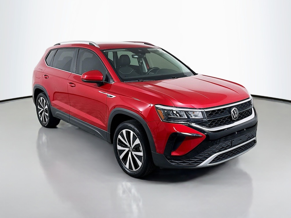 Certified. 2023 Volkswagen Taos Kings Red Metallic/SSV 1.5T SE Certified, Like new, Call now, Local Trade. Clean CARFAX. CARFAX One-Owner. AWD 7-Speed DSG Automatic with Tiptronic 1.5L I4 Turbocharged DOHC 16V LEV3-SULEV30 158hp