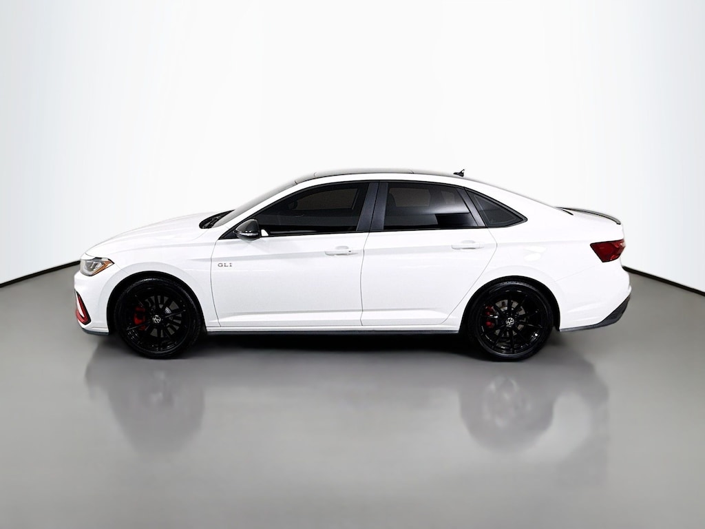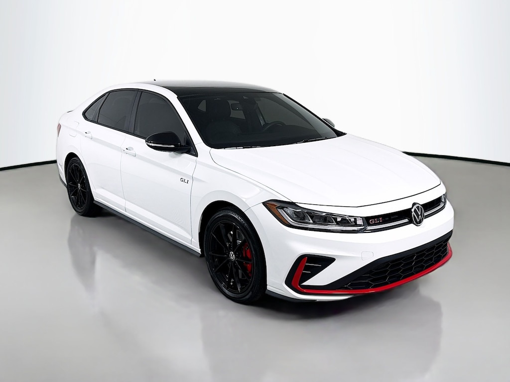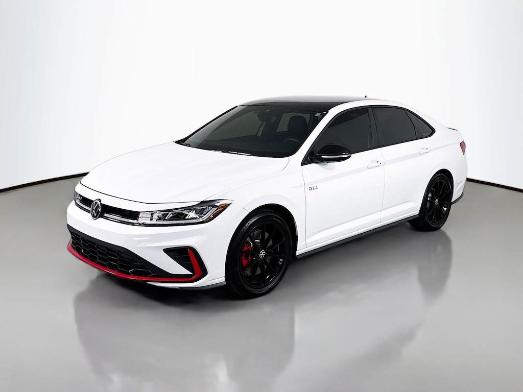 Certified. 2025 Volkswagen Jetta GLI Pure WhiteSDS 2.0T Autobahn Certified, Like new, Call now, Local Trade, 18" black painted alloy wheels, deep black pearl roof, deep black pearl side mirror caps, GLI black package. Clean CARFAX. CARFAX One-Owner. FWD Automatic with Tiptronic 2.0L TSI DOHC